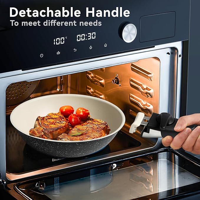 - All-in-One Adaptability: Removable handles make this pots and pans set oven, fridge, and table-ready. Perfect for meal prepping, baking, or stylish serving