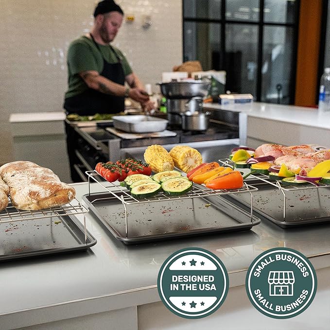 - MULTIPLE USES AND OVEN-SAFE: Our wire rack cooking is designed for roasting, baking, grilling, smoking, drying, and BBQ in the oven. It can handle temperatures up to 575°F due to its high heat tolerance. Use this cooling rack baking for all your culinary needs.