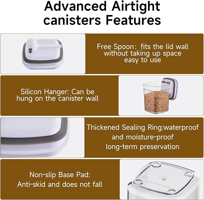 - 【BPA-Free & Food-Safe Pop Containers】Crafted from food-grade AS material, these pop containers for food storage are rigorously BPA-free and non-toxic. These air tight cereal storage containers come with a premium silicone seal that ensures maximum freshness and prolonged food storage by sealing tightly. Our airtight pantry containers with lids will protect your food from air and water