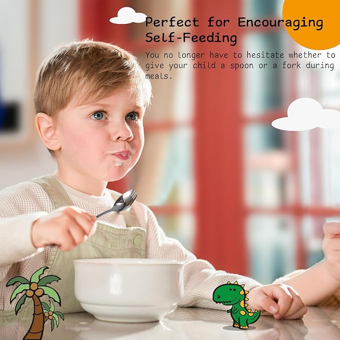 - Dinosaur Theme Supports Development: The dinosaur design fulfills toddlers' need for identity and belonging, transforming utensils into personally cherished items. This engaging motif introduces fun and gamification into mealtimes, reducing resistance and encouraging voluntary utensil use. Furthermore, the familiar and powerful imagery provides comfort and courage, helping children persevere through feeding challenges and build self-confidence with every bite