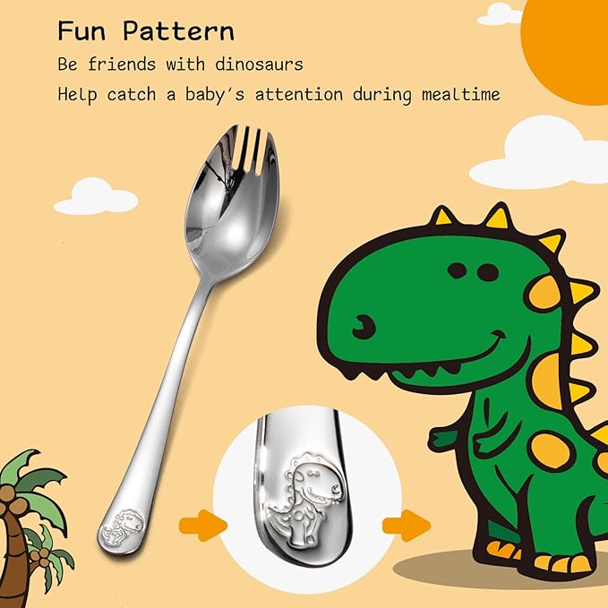 - Toddler Sporks with Dinosaur Design: This utensil set includes eight 5.7-inch sporks expertly designed for young children transitioning to self-feeding. Each piece features a playful dinosaur imprint that captures toddler attention, promotes interest in eating, and encourages independent cutlery use. The size and shape are optimized for small hands, supporting confident grip and coordination during mealtime