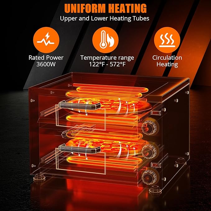 - Versatile & Safety Certified:Fits 12" pizzas, calzones, and flatbreads with ease. UL-listed for home and commercial use (120V/240V compatible). Includes a detailed installation guide and 1-year full warranty, backed by US-based customer support.