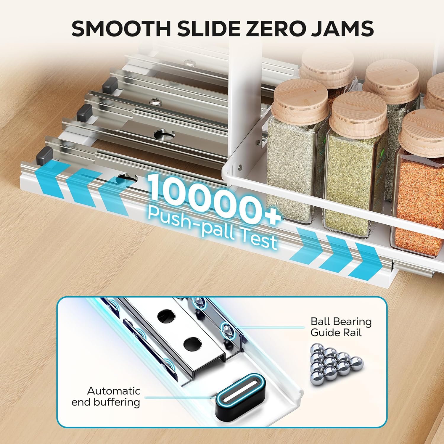- BALL BRARINGS GUIDE RAIL--Smooth pull-out, automatic buffering at the end
