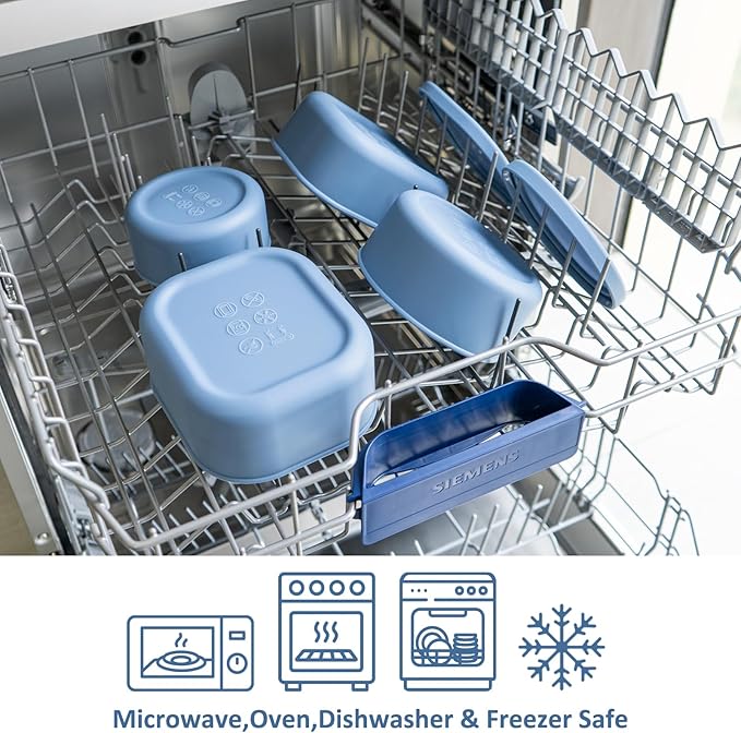 - 【MICROWAVE & FREEZER & OVEN & DISHWASHER SAFE】These silicone bento lunch box containers with lids thrive from –4 °F to 392 °F. Freeze leftovers, microwave lunch, bake pasta, or crisp snacks in the air fryer—no need to swap dishes. When the meal is done, slide them onto the dishwasher’s top rack for fast, hands-off cleaning