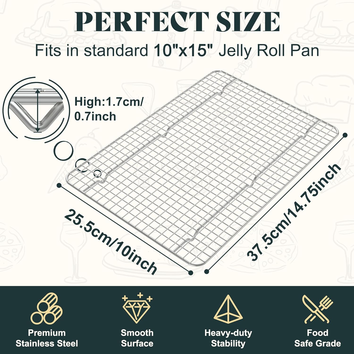 Cooling Racks for Cooking and Baking-10"x14.75" Oven Safe Premium Stainless Steel Heavy Duty Baking Rack Tight-Wire, Fits Jelly Roll Pan Rack for Roasting & Grilling & Cooking-Set of 2