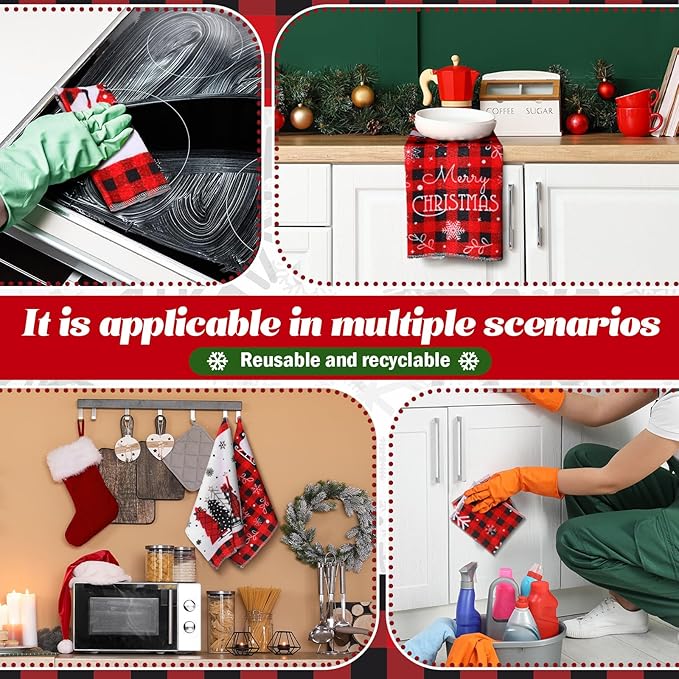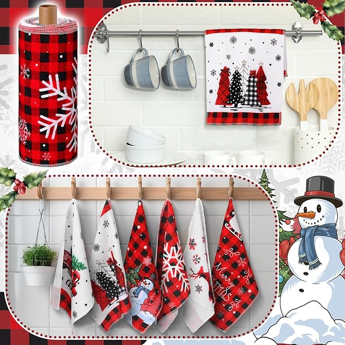 - Flannel Material: our christmas towels are made of cotton flannel, this material ensures an effective cleaning up and the durability of the towels even after numerous wash cycles, and they are equipped with roll, making your storage easy
