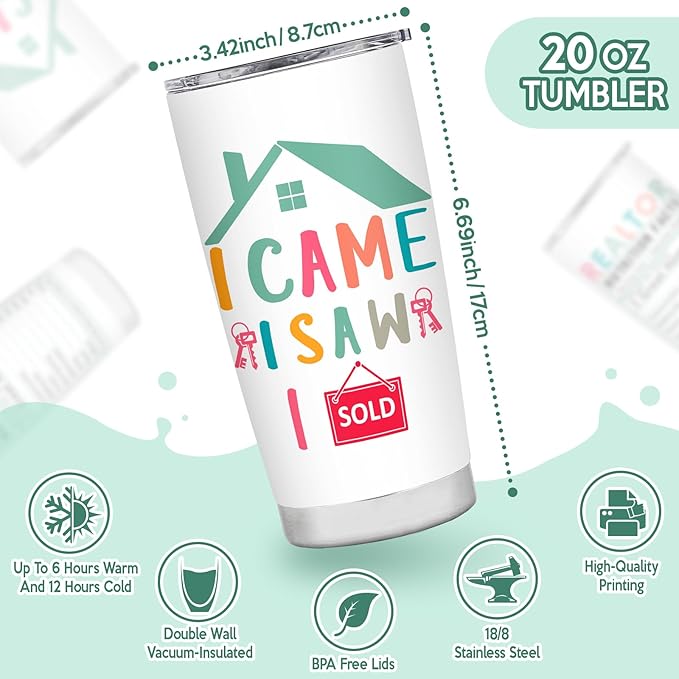 - 🎉REALTOR GIFTS: "I CAME I SAW I SOLD" Reflects her ability to bring success to every real estate deal she handles. As a real estate agent, she takes pride in turning properties into valuable assets for her clients. Her passion and professional skills in the real estate market transforms listings into sold properties, making her a trusted and reliable agent for all property needs. Send her this amazing tumbler at closing deal, she will definitely love it.