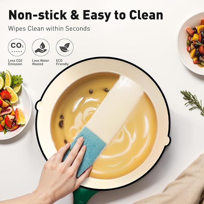 - 【Cleanup & Maintenance】: The enamel coating is smooth, non-toxic and non-stick, so stains don't stick to the cookware and cleaning is effortless. Use wood or silicone utensils instead of sharp metal ones, as this helps protect the cooking surface