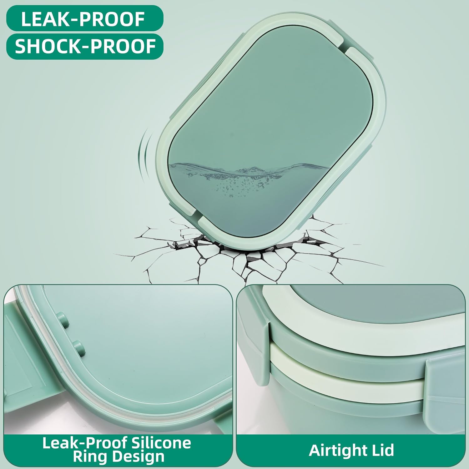 Hidden-Handle Bento Box Adult Lunch Box, Leak-Proof Lunch Containers for Adults & Kids, 2-Layer 5-Compartment 6 Cup with Utensils, Green
