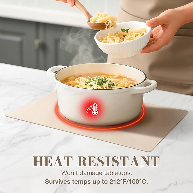 - Heat Resitant & Spill-Ready Defense: Sealed-edge PU construction locks out liquids—wipe spills instantly, no trapped moisture or peeling edges. Leakproof edges block spills better than fabric mats, keeping tables dry. Handles scalding dishes (up to 212°F) without warping or ghostly heat marks. Thick cushioning quiets clattering dishes while guarding wood from scorch scars. No ruined tabletops—wipe and go