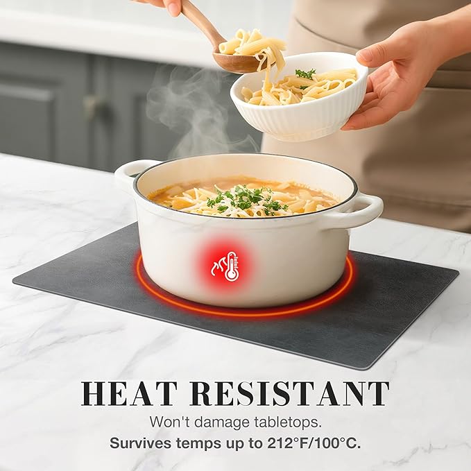 - Heat Resitant & Spill-Ready Defense: Sealed-edge PU construction locks out liquids—wipe spills instantly, no trapped moisture or peeling edges. Leakproof edges block spills better than fabric mats, keeping tables dry. Handles scalding dishes (up to 212°F) without warping or ghostly heat marks. Thick cushioning quiets clattering dishes while guarding wood from scorch scars. No ruined tabletops—wipe and go