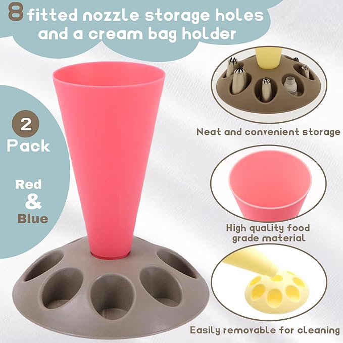 2 Pack Piping Bag Holder – Piping Bag Holder Stand for Filling, Icing Bag Holder, Pastry Bag Holder Stand with 8 Nozzle Slots, Red and Blue