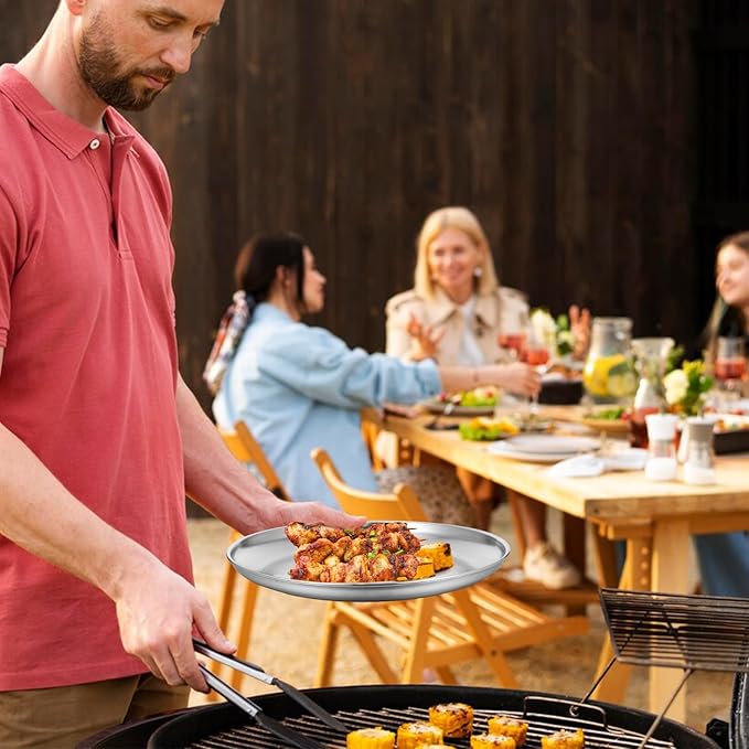 - 【Widespread Application】 The stainless steel plates can be suitable for holding and displaying many items, such as food, fruit, candles, perfume, cosmetics, and more, helping to organize your things and keep your space tidy. They are applicable for kitchens, restaurants, picnics, camping, outdoor activities, barbecues, parties, and many other occasions