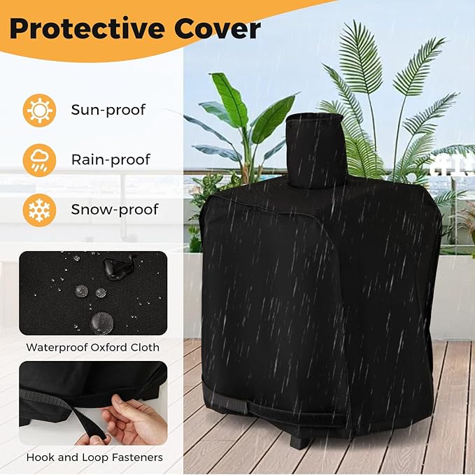 - All-Weather Protection: This outdoor pizza maker comes with a cover crafted with waterproof Oxford cloth, which is also sun-proof, rain-proof, and snow-proof. Secured by hook and loop fasteners, the protective cover keeps the pizza oven in pristine condition, ready for your next barbecue or camping trip.