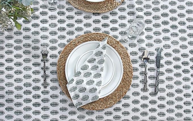 Ridhi Emerald Green Hand Block Print Cotton Rectangle Tablecloth 102 x 48 inches Reusable Table Cover Decorative Everyday Use for Dining Room, Farmhouse, Home, Party, Festive & Wedding, Fall
