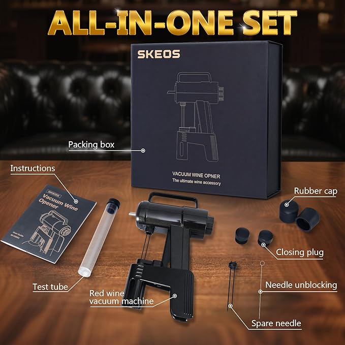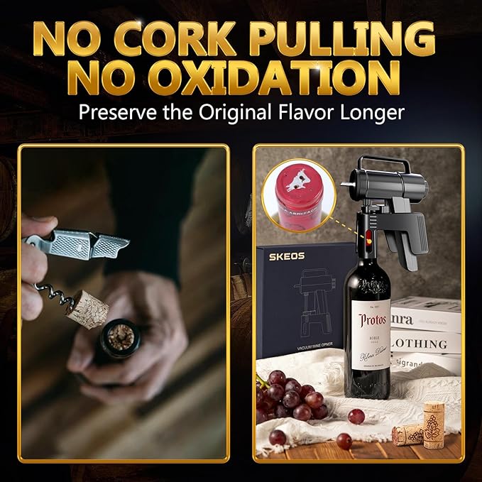 SKEOS Electric Wine Opener, Needle Piercing Vacuum Wine Bottle Opener for Smooth Extraction, No Cork Damage, Vacuum Seal Freshness, Perfect for Wine Lovers, Black