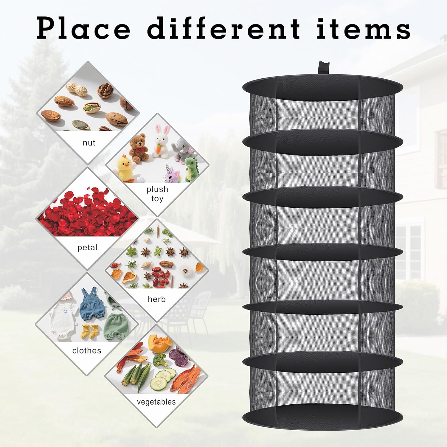 - 2. High quality breathable material&spacious space: The breathable mesh herbal drying rack is made of safe and durable high-quality nylon mesh and built-in steel wire rings, and does not contain chemicals. The large size (23.6 "deep x 23.6" wide x 63 "high) provides ample drying space, and it is recommended that each layer bear a weight of approximately 1.2kg, which is more suitable.