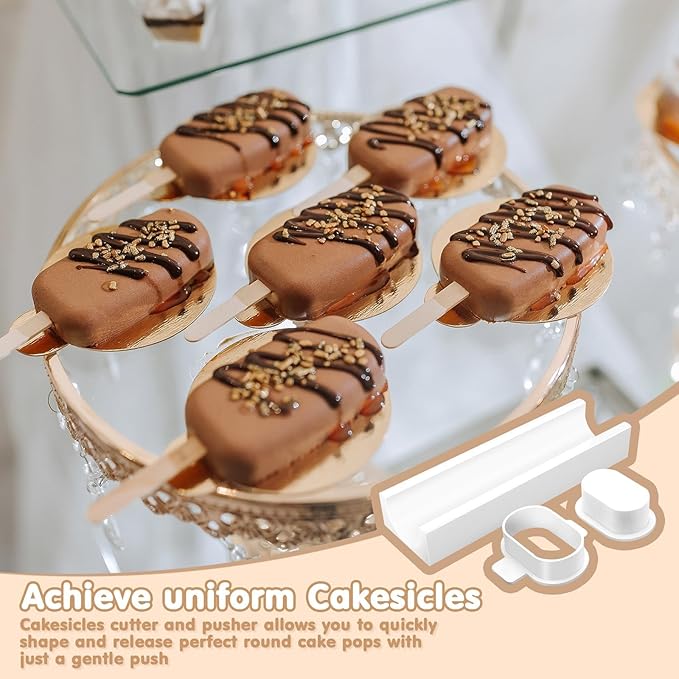 - Cakesicle Cutter Mold Set: You will receive 352 pcs cake pop maker set,includes 1 cake pops tray, 1 cakesicle mold, 100 pcs cake pop bags, 100 pcs twist ties and 100 pcs cake pop wooden sticks, Whether you're a home baker or a professional, this set makes cakesicle decorating and shaping stress-free