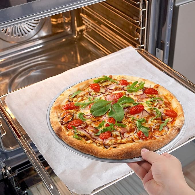 - High Quality Materials: These pizza pans are made of high quality aluminum alloy with excellent high temperature resistance, designed with a unique non-stick coating, so you don't have to worry about your food sticking to the surface, and you can easily remove the pizza