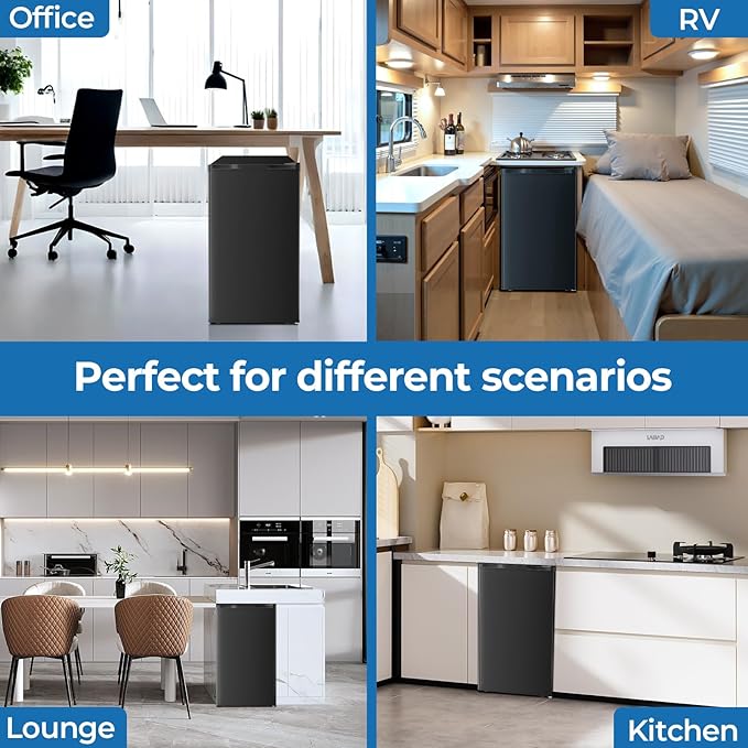 3.2 Cu.ft Mini Fridge with Freezer, Compact Refrigerator with Reversible Single Door, Adjustable Thermostat, Low Noise, Energy Efficient for Office, Dorm, Bedroom, Apartment (Black)