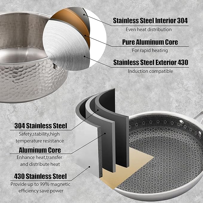 - š„ PREMIUM CONSTRUCTION: Features durable nonstick coating and sturdy stainless steel handles, with pan depths ranging from 1.97" to 2.17" for various cooking needs