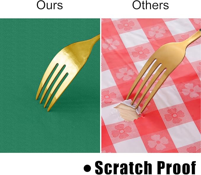 - [Sturdy & Functional] The surface of our tablecloth features premium vinyl material, which makes it more sturdy and protects your table from everyday wear and tear, and tableware scratches