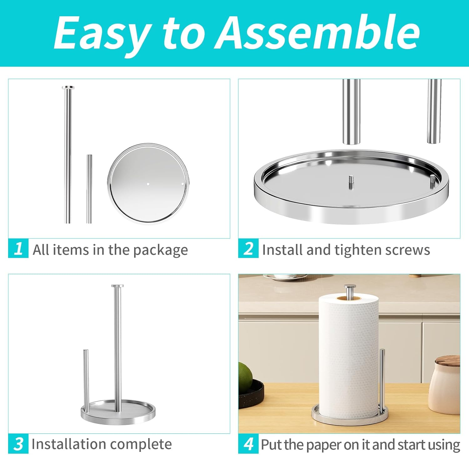 - [Weighted Base plus Anti-slip Pad] The countertop paper towel holder has a weighted base for easy one-handed operation, keeping it stable while you tear paper. The base also has a full-size circular non-slip pad to further enhance stability and prevent scratches on your countertop