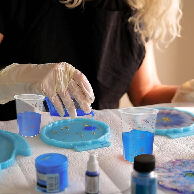 - Crafted from durable materials, these cups are resistant to paint chemicals and epoxies. The stable base and transparent body ensure accurate measurements, while the wooden sticks are sturdy and reliable