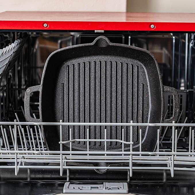 - Enhanced Design for Superior Searing: Designed with optimized high ridges, this cast iron grill pan lifts food away from excess fats while creating mouthwatering grill marks. It delivers the iconic charred look and flavor you love from cast iron grills, but with the added benefit of our superior nonstick surface.