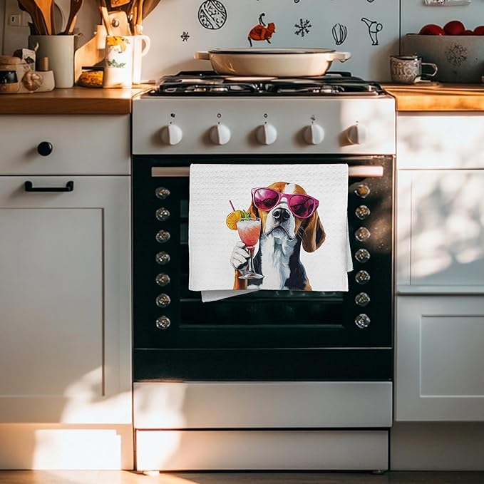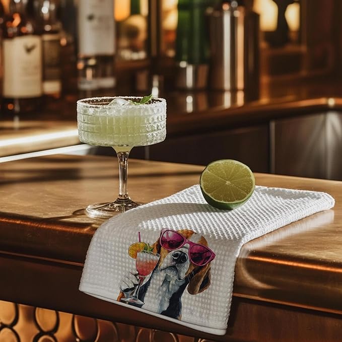 Cabana Bro Funny Cocktail Beagle Dog Kitchen Towels, Beagle Lover Mom Gifts Dish Tea Hand Towels for Kitchen Bar Cart Decor, Gifts for Cocktail Lovers, Bar Towel for Bartender, 16x24 Inches