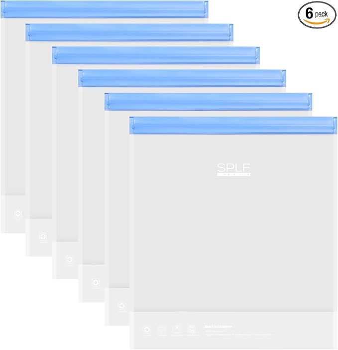 - 100% Satisfaction & Versatile: Set contains 6 pcs 2 gallon reusable baggies with size 13" W x 15.6"H, collapsible and stand up design makes them perfect containers for food storage (meal prep, soup, snack pouches, etc), home items & kitchen organization (cosmetics, jewelry, stationery etc), travel storage bags (make-up, travel toiletries, etc), camping and more in home, office and outdoor. Back with SPLF 100% satisfaction servie, buy with confidence.