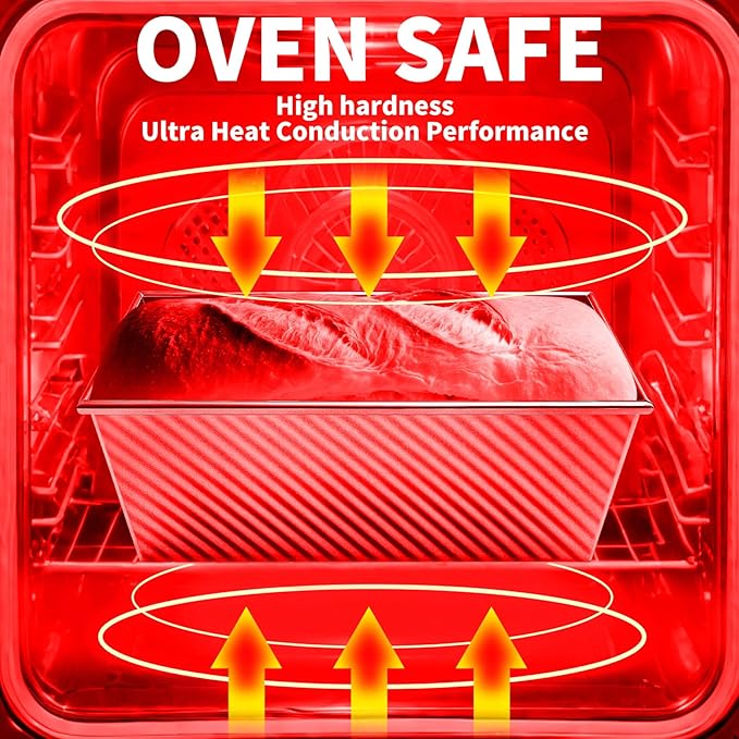 - NON-STICK & VENTILATED BASE DESIGN- The black-coated sandwich bread loaf pan‌ ensures effortless bread release without damaging its shape. Additionally, the ‌ventilated base design‌ promotes ‌even heat distribution‌ for richer flavor and texture. Note: When baking batter, brushing a small amount of cooking oil makes it simple to unmold the bread and easier to clean.