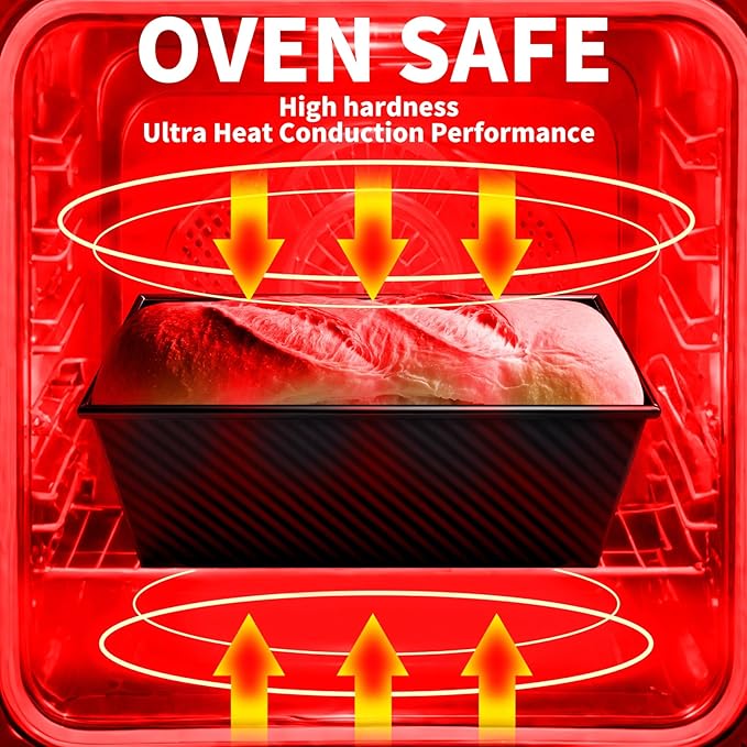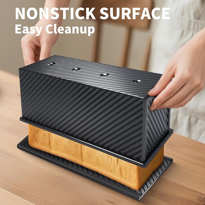 - NON-STICK & VENTILATED BASE DESIGN- The black-coated sandwich bread loaf pan‌ ensures effortless bread release without damaging its shape. Additionally, the ‌ventilated base design‌ promotes ‌even heat distribution‌ for richer flavor and texture. Note: When baking batter, brushing a small amount of cooking oil makes it simple to unmold the bread and easier to clean.