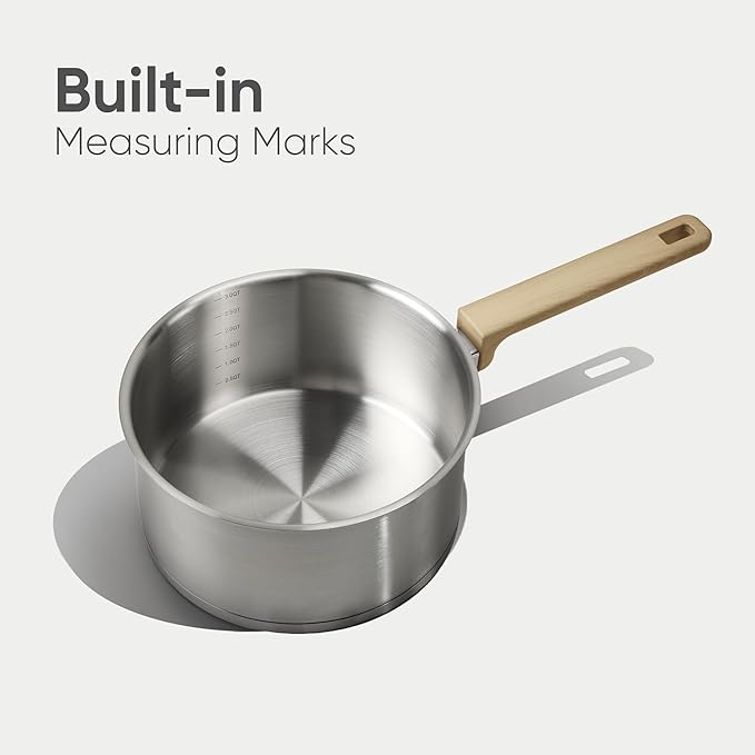 - 【Effortless Cleaning】The saucepan's mirror-polished, stain-resistant surface prevents food from sticking and is a breeze to clean. For long-lasting performance, we recommend a simple hand wash with warm, soapy water