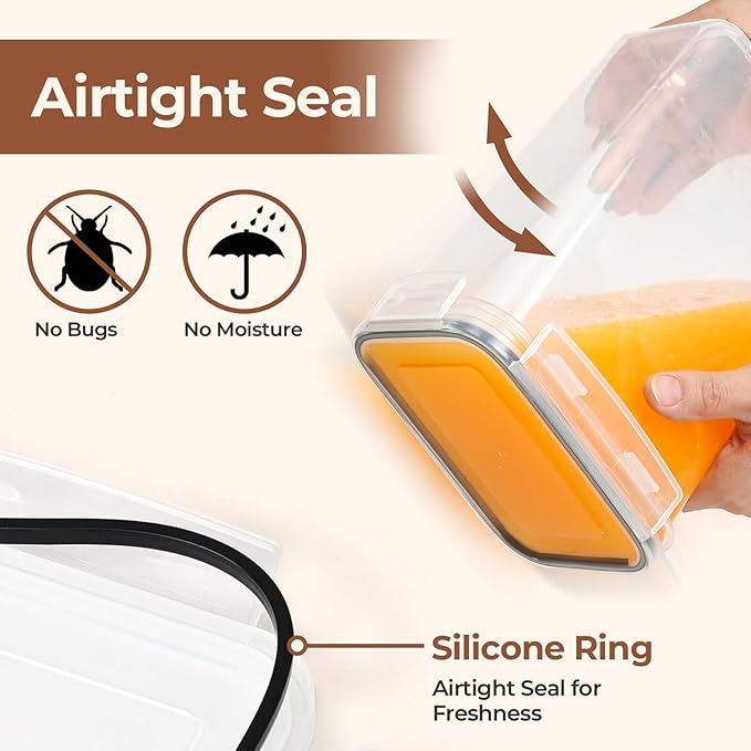 - Airtight & Fresh — Designed with silicone sealing strips and secure locking lids, these air tight pantry storage containers lock out pests and moisture to keep contents dry and fresh. Easy to clean, dishwasher safe, and reusable for long-term use.
