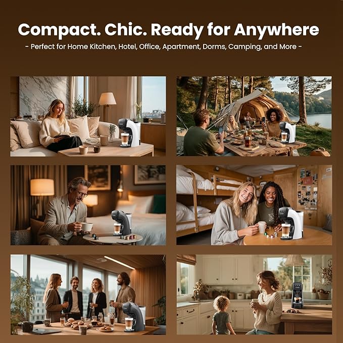- Modular Design & Multi-Pod Compatibility: The Single Serve coffee maker features multiple removable and replaceable pod adapters, allowing you to choose from various compatible pods (e.g., NES*, DG*, K*Cup, Point*, ground coffee, etc.). Enjoy multiple brewing options in one machine—perfect for satisfying various taste preferences while saving space and reducing costs
