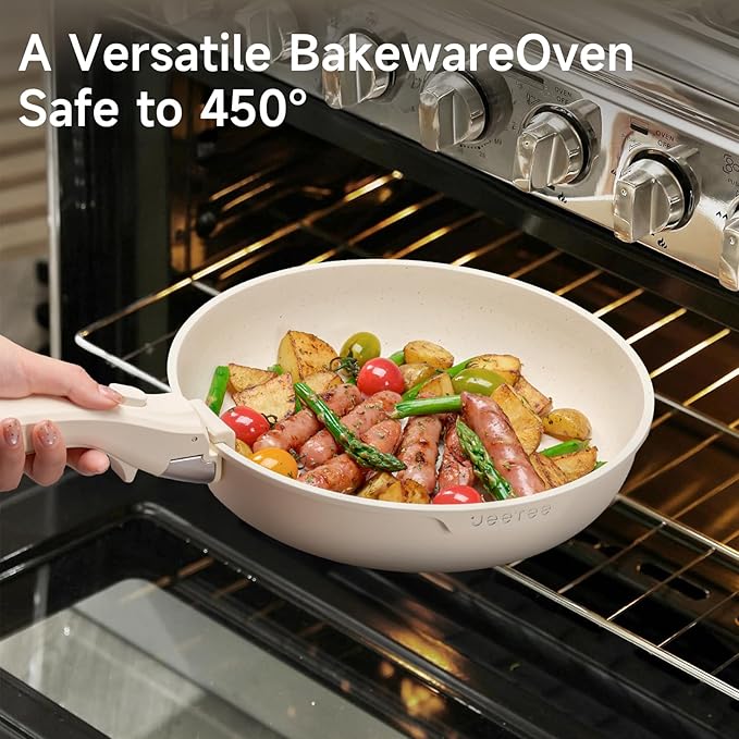 - Optimal Storage: Neatly stack all the detachable handle pots and pans, saving 75% of cabinet space—keeping the kitchen organized and tidy. Perfect for compact kitchens and an ideal choice for RVs or campers.