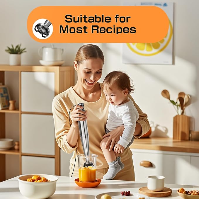- Effortless Clean-Up, Scratch-Free: Features a unique food-grade nylon blade guard designed to minimize suction, preventing scratches on your pots and pans and keeping splashes at bay for a cleaner kitchen and hassle-free clean-up.