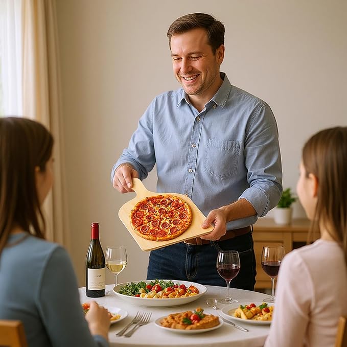 - 【Versatile Use】These wood pizza peels are not just for pizza. Use them as cutting boards for bread, cheese, fruits, and vegetables. Their ergonomic handle design ensures easy maneuvering, making them a practical addition to any kitchen.