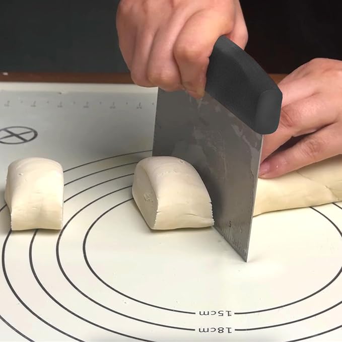 - Thickened stainless steel - This bench scraper is made of thickened stainless steel, non-reactive, rust free, hygienic and durable. Heavy duty
