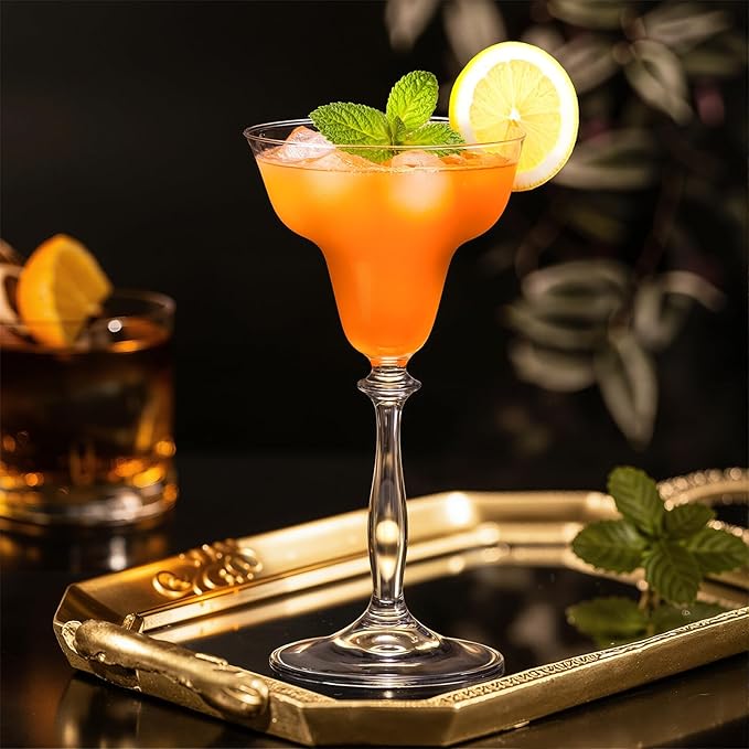 - 【Thoughtful Details】The broad rim provides ample space for salt or sugar coating, allowing effortless enjoyment of savory and sweet notes while elevating the tasting experience. The expanded surface area facilitates the evaporation of alcohol and citrus aromas, releasing refreshing fruity and beverage fragrances before the first sip. The stem design minimizes hand contact with the bowl, effectively insulating the cocktail from body heat to maintain optimal temperature.