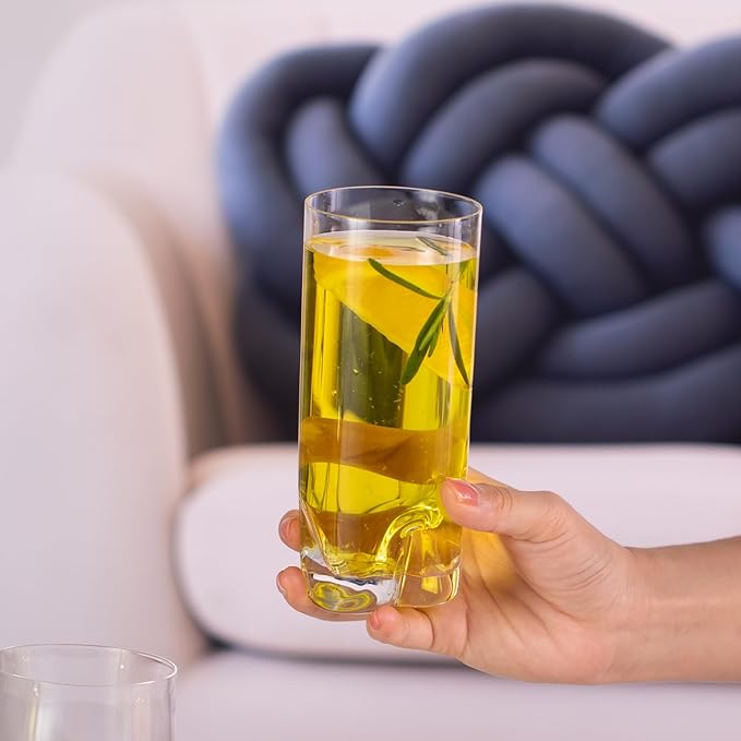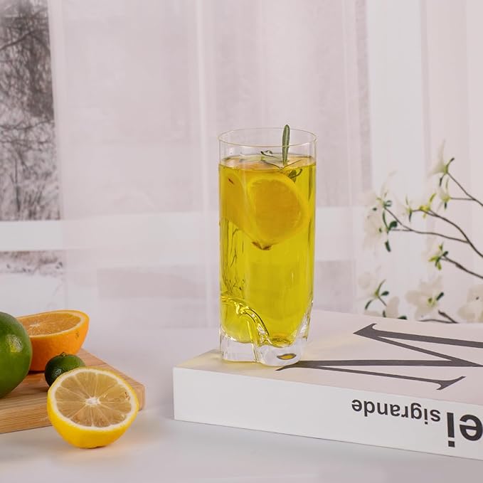 - 【Meticulous Design】The highball glass with a broad and flat base ensures stability and prevents tipping. The wide rim allows smooth sipping, easy addition of ice, fruit slices (e.g., lemon, strawberry), or straws, and effortless stirring. The full-bodied contour fits comfortably in the palm for a secure and pleasant grip.