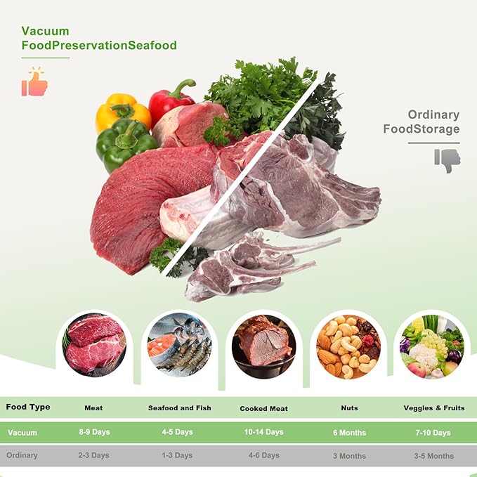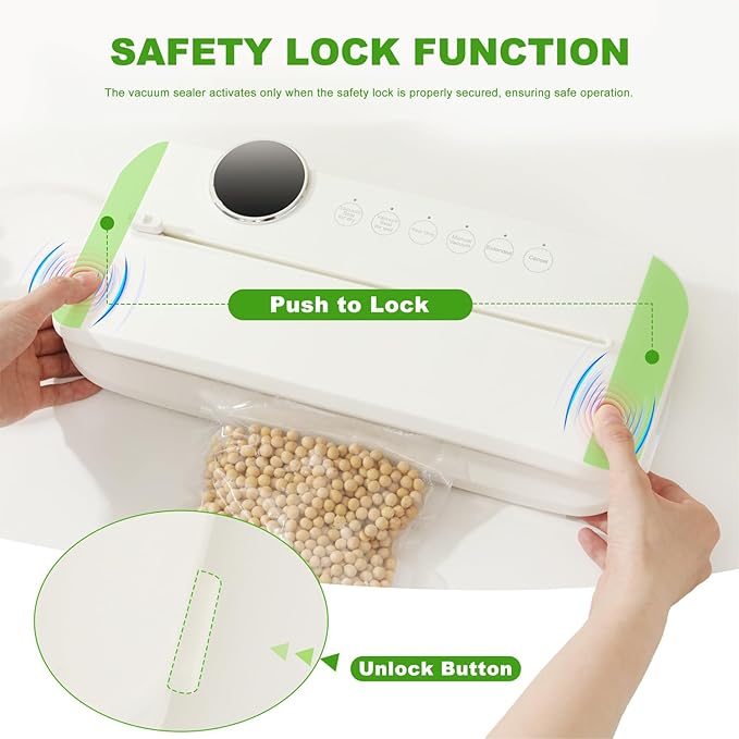 - 【Versatile Functions】- Handles vacuum sealing for dry, wet, and liquid-containing foods effortlessly. It features one-touch fully automatic operation to complete both vacuuming and sealing in one step. For added flexibility, choose semi-automatic spot vacuum + seal, vacuum-only, or seal-only modes based on your specific food items.