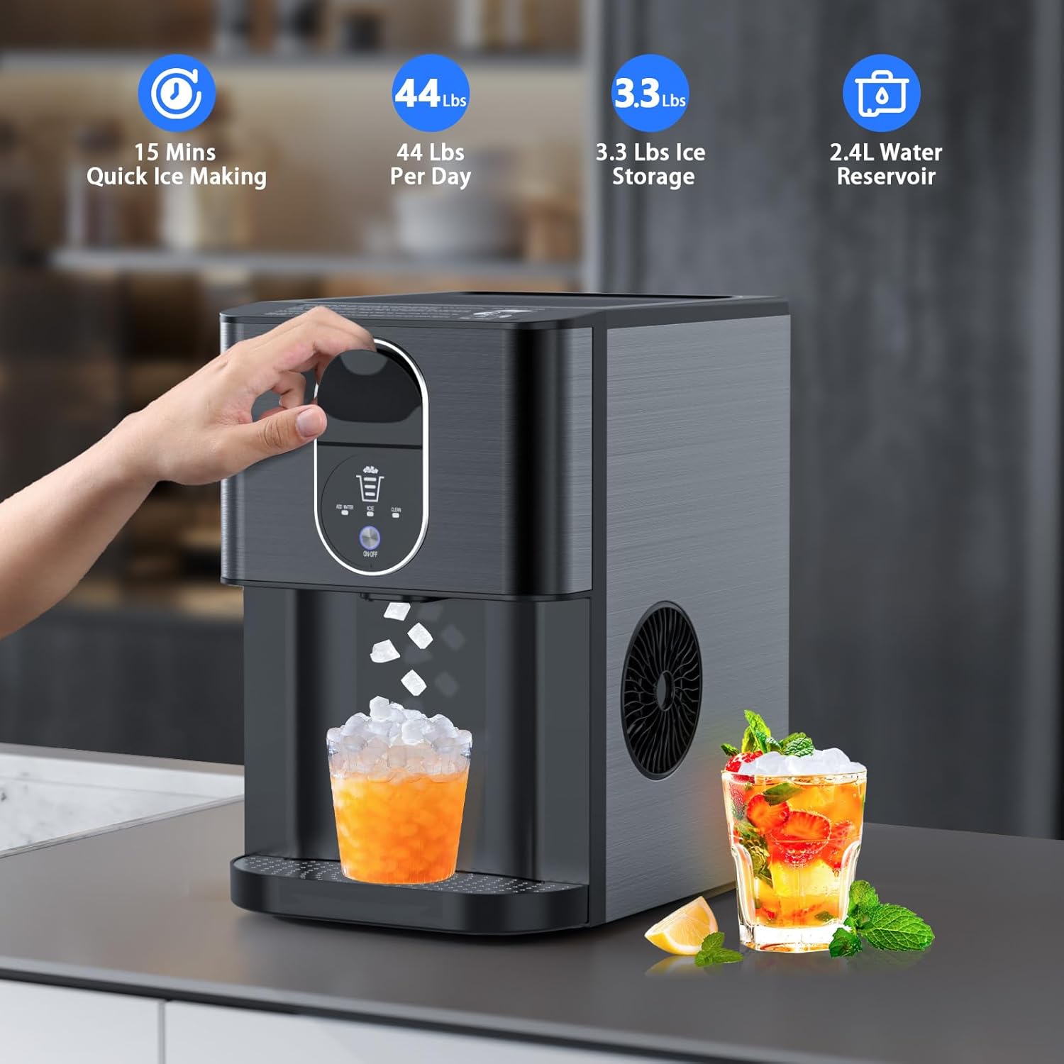 - 【Chewable Soft Ice】The chewable nugget ice has a softer texture and boasts a slow melt. Experience coolness in all its fullness! Perfect for smoothies, cocktails, sodas, and more. It preserves the authentic flavors like no other ice.