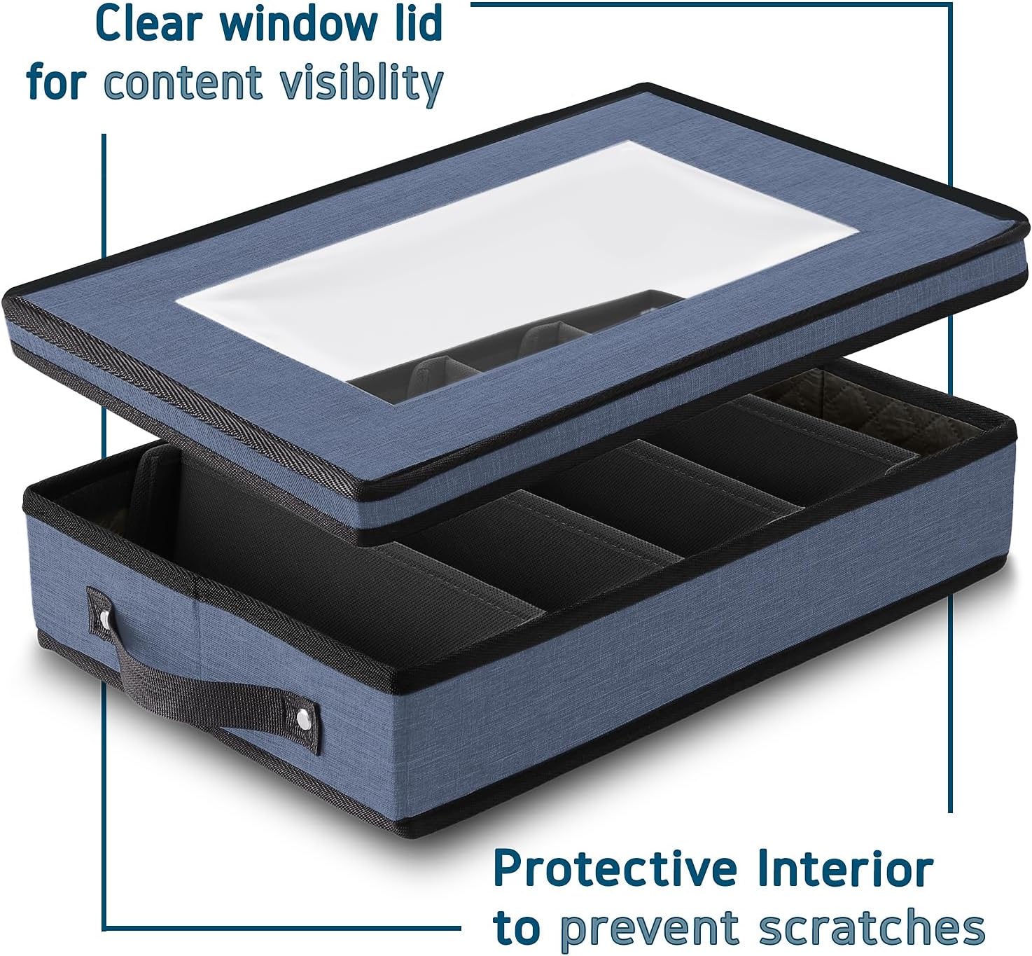 Flatware & Utensil Storage, Durable Silverware Storage Box with Padded Dividers, 5 Compartment Flatware Storage Case, Silverware Case with Handles, Protects and Organizes Cutlery, Blue