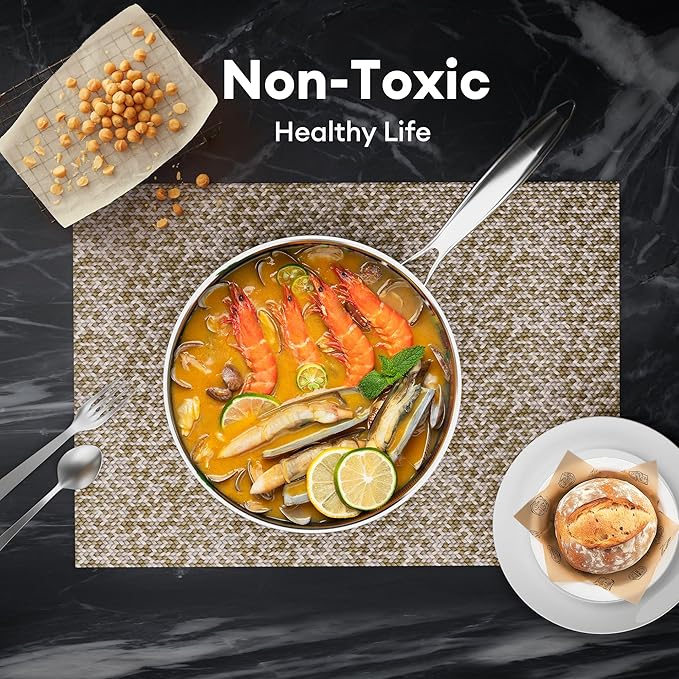 - 【Food-grade Stainless Steel Saute Pan】: The saute pan is made of 3-layer stainless steel with aluminum core for even heat distribution, preventing hot spots & ensuring perfect searing every time. Oven-safe & rust-resistant for long-lasting durability