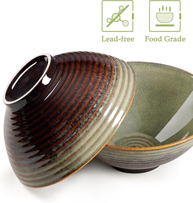 - Durable & Safe: These ramen bowls are made of premium ceramic clay and glaze, which is free of lead and cadmium. Non-porous surface does not absorb food odors, stains or any impurities. Never worry about toxic chemicals leaching into your food. Much healthier and safer than melamine.