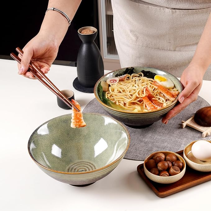 - Ideal Gift Choice: Two ramen bowls are accompanied by 2 spoons and two pairs of chopsticks, which are made of Machilus. Itβs a lovely gift for housewarming, wedding party, birthdays, holidays, or anniversaries or for anyone who enjoys ramen.