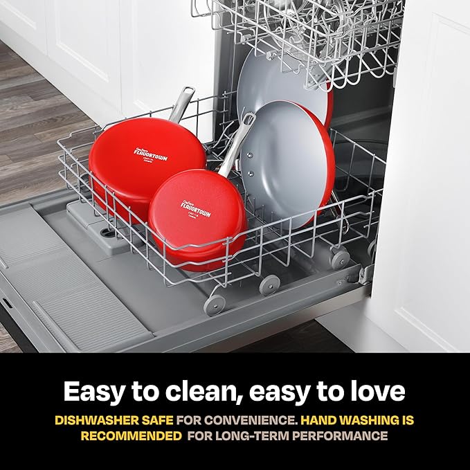 - EASY TO CLEAN, EASY TO LOVE: Dishwasher safe for convenience. Hand wash is recommended for long term performance. These nonstick pots and pans clean up fast. Whether you’re simmering sauces or searing steaks, cleanup is always stress free.