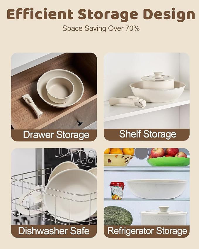 - Smart Space Optimization: Stackable design + fridge storage lids maximize space. Replace bulky traditional pots and pans sets with this compact solution